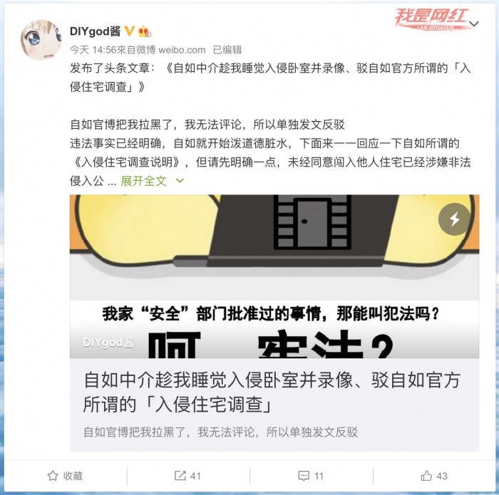 当事人认为,根据我国法律,自如工作人员未经同意闯入他人住宅已经涉嫌非法侵入公民住宅,并指出自如在说明中刻意隐瞒聊天记录。对于违反合租规定饲养宠物、堆放快递纸箱的问题,当事人认为,自如可以通过合法渠道向当事人反馈或解约,但“构不成非法入侵住宅的借口”。另外,当事人表示已经联系好律师,“很快就会准备好材料起诉”,但诉讼需要时间。