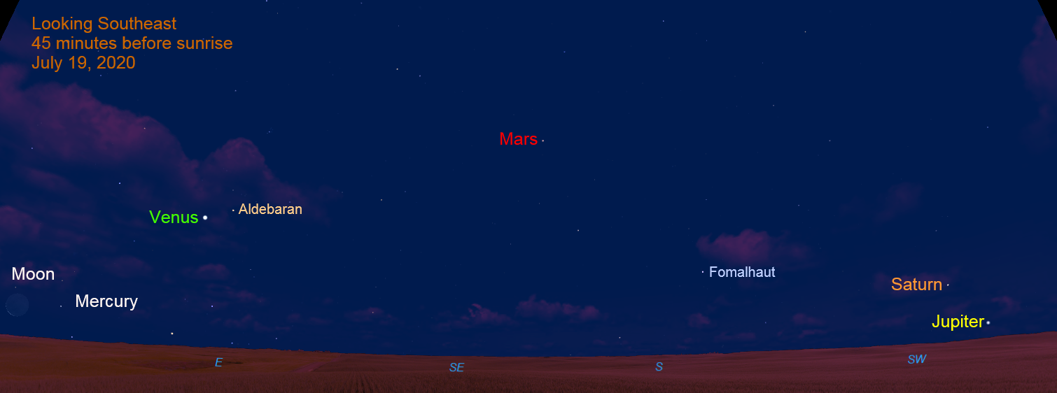 “在连续的早晨,每天提前3-4分钟看,”亨特建议。“在7月25日左右之前,你可能会在天空中捕捉到(‘五星连珠’)。”