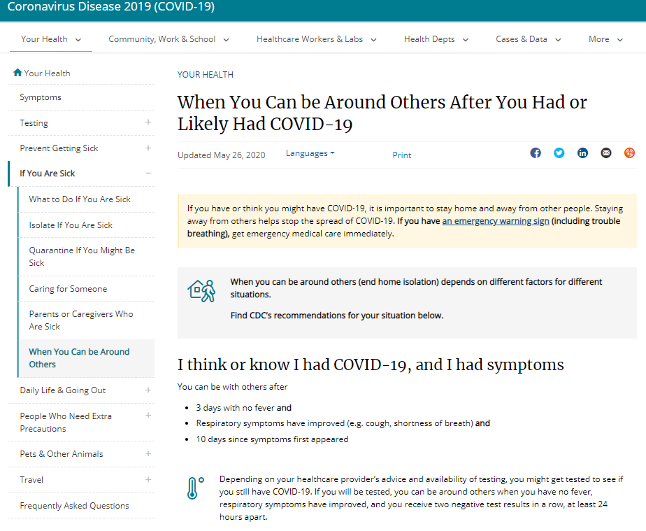 CDC补充道,如果民众检测出COVID-19阳性,但从未出现过任何症状,他们应该在得知检测结果后等待10天。此外,如果碰巧身边有人可能检测出新冠病毒阳性,CDC建议民众在接触日期后隔离14天。CDC列出的完整新冠症状列表如下: