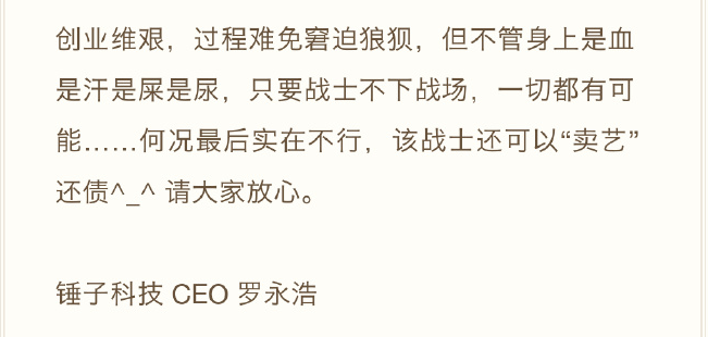 不过,目前来看,罗永浩和锤子科技要实现这一愿景可能性已微乎其微。但不可否认的是,老罗曾在锤子科技上注入了情怀,且真切地为这一愿景奋斗过。