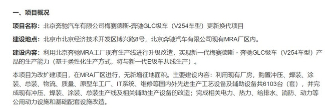 作为目前奔驰在国内最畅销的SUV车型,GLC即将迎来换代车型。日前,据媒体报道, 国产全新一代GLC(V254车型)正在亦庄MRA工厂进行技术改造,新车将与新一代E级共线生产,还将首次搭载1.5T发动机。
