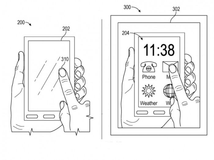 苹果公司的专利申请取消了在iPad或iPhone上放置屏幕的做法,而是利用AR和 "苹果眼镜"。虽然在申请中描述了不同的方法,但最主要的是一种使信息在眼镜上呈现的方法。苹果在专利当中表示,如果你戴着 "苹果眼镜",你看着你的iPad屏幕,AR会让你觉得该设备上有一个正常的显示屏。对于周围的人甚至你身后的人来说,iPad可以看起来完全是一片空白。这个系统除了被动地显示信息阅读外,AR系统还会让人觉得控制在iPad屏幕上。然后,iPad可以记录用户对这些控件的点击。其结果是,在周围的人看来,你好像是在随机点击一个空白的屏幕。但对你来说,这就像你在使用普通的iPad或iPhone一样。
