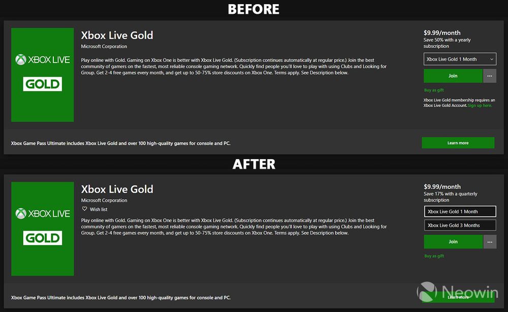 目前 Xbox 已经决定从微软在线商店中移除 12 个月的 Xbox Live Gold SKU。客户仍然可以通过微软商店在线注册 1 个月或 3 个月的 Xbox Live Gold 订阅。
