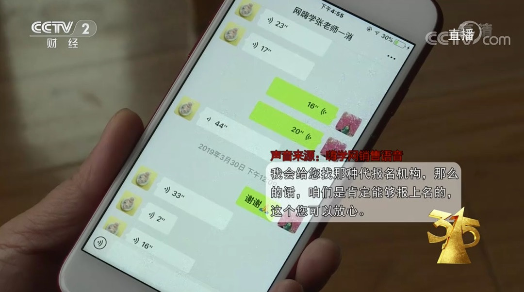 直到 2020 年 1 月,潘女士带着记者前往嗨学成都分中心,客户投诉部门仔细看了其提供的嗨学网销售的聊天记录后,才承认销售存在违规。不过,虽然承认嗨学网销售存在问题,但负责人却不同意全额退款。 双方僵持中,负责人还直言自己处理上千起合同,对于销售的各种承诺见怪不怪。」