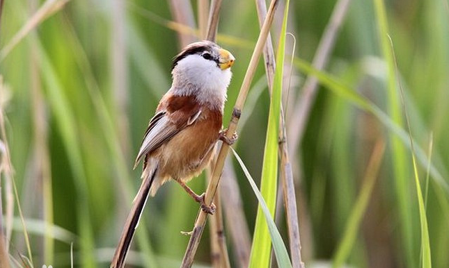 一对被誉为“鸟中大熊猫”的震旦鸦雀在河北省武强县天平沟安家,被摄影爱好者拍下。震旦鸦雀(学名:Paradoxornis heudei)是中国特有的珍稀鸟种。它的名字非常中国化,古印度称华夏大地为“震旦”。这种鸟的第一个标本采集发现是在中国南京,所以定名为震旦鸦雀。由于这种鸟生活空间仅限于芦苇荡中,且数量过于稀少,中国人叹为“鸟中大熊猫”。