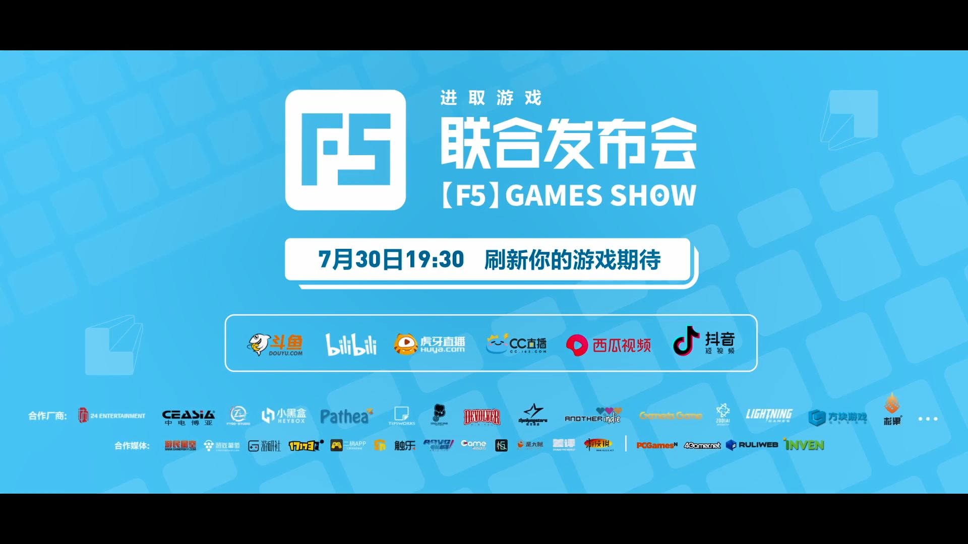 今日(7月17日),“[F5]进取游戏联合发布会”正式官宣,在7月30日19:30,30余款独立、单机、买断制游戏(从宣传片来看多为国产单机游戏),17位玩家大佬将联袂呈现新游首曝、高能情报、折扣活动等精彩内容。