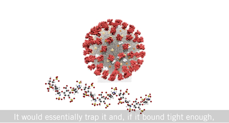 该团队测试了三种版本的肝素,包括一种非抗凝剂的低分子版本。他们利用计算建模来确定药物与病毒结合的具体位置。所有的实验都表明,肝素会作为诱饵发挥作用。上面的视频解释了肝素-SARS-CoV-2相互作用的原理。