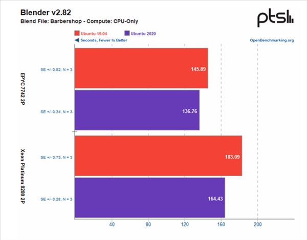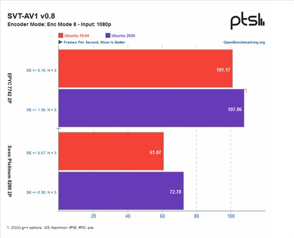 测试系统一个是Ubuntu 19.04,一个是最新的Ubuntu 20.10 Daily测试版,后者基于Linux 5.8系统内核,编译器为GCC 10。