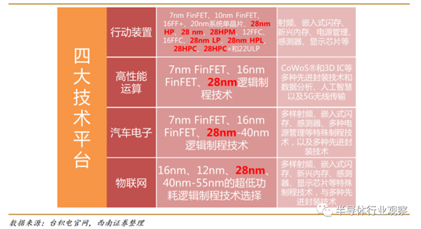 台积电的四大技术平台中都有28nm的身影(图源:西南证券)