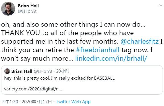 此前由于涉嫌违反竞业禁止协议,跳槽谷歌云的前 AWS 营销副总裁 Brian Hall 被卷入了与前东家的法律纠纷。不过现在,双方似乎已经达成了秘密和解。因为只隔了一夜,Brian Hall 就改好了自己的领英(LinkedIn)个人资料头衔,表明其已被批准担任 Google Cloud 的产品和行业营销副总裁。