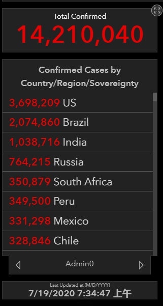 目前,全球累计新冠确诊病例已经超过1420万,其中美国达到370万,占总数的超过四分之一,而巴西也已经突破200万,印度超过100万。