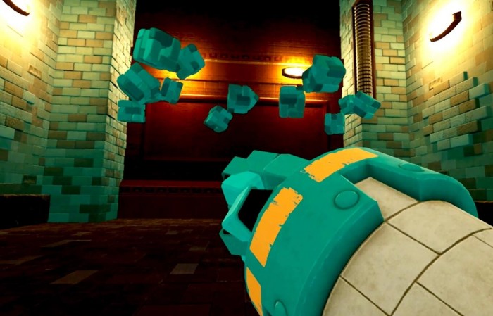 这款VR项目的专用外设是洛克人的手炮,手炮有两个按钮,前方的扳机键是开枪,长按可以蓄力。