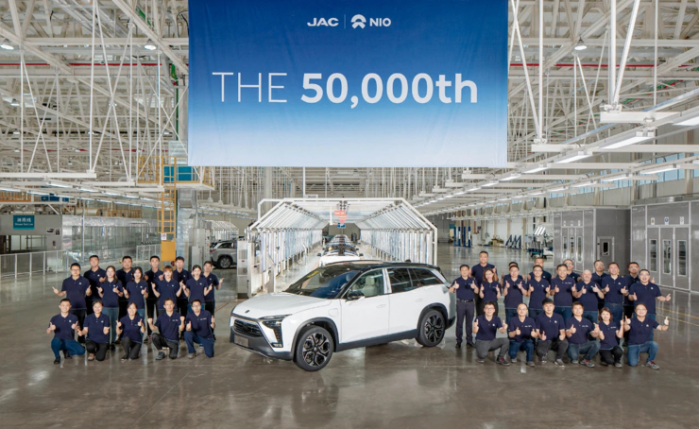 2018年5月第一台蔚来ES8量产下线开始,783天,7月18日下午,蔚来第50000辆整车在合肥制造基地量产下线。