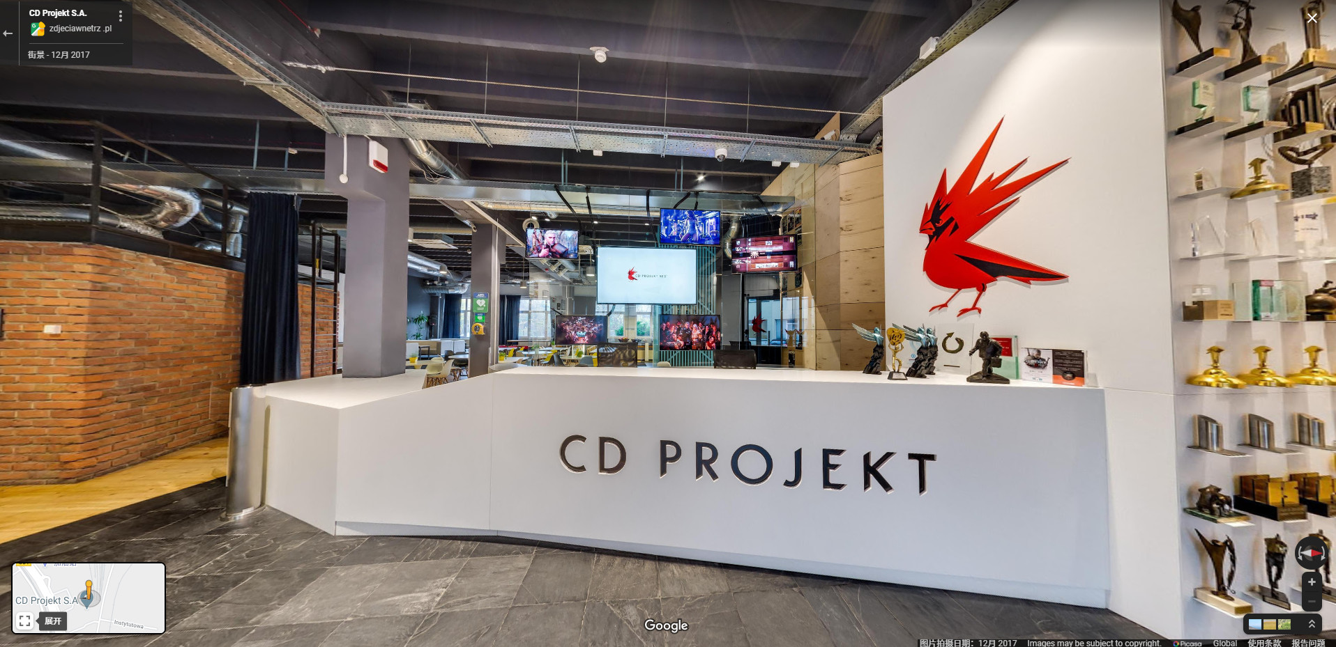 如果你对《巫师3:狂猎》背后的开发商CDPR非常好奇,想看看他们工作室的环境和气氛的话,那么你可以借助于谷歌地图来实现自己的这一小愿望。使用谷歌地图,你就可以像实地探访一样“走进”CDPR位于波兰华沙的工作室,只不过你是在电脑上拖动鼠标和几个方向键。