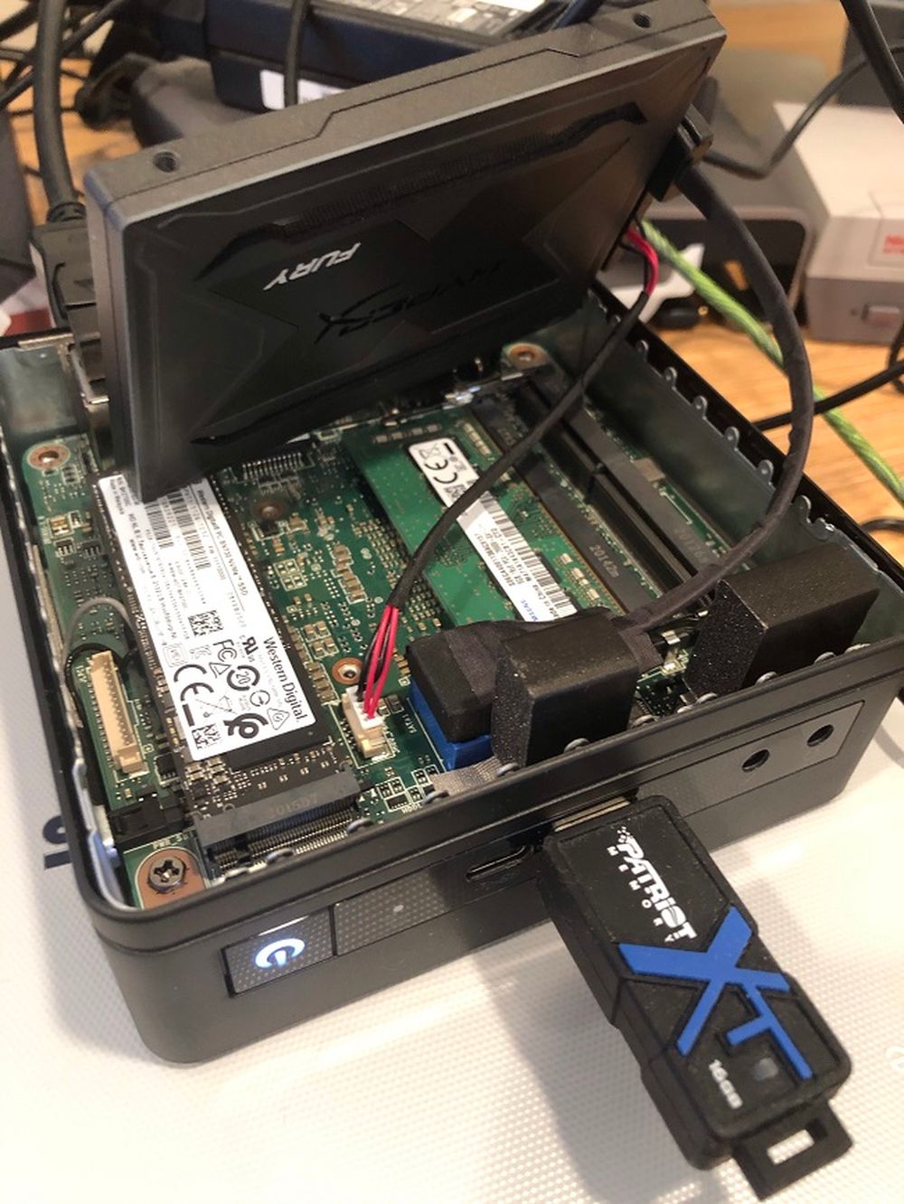 外媒编辑没有对预装的 512GB Western Digital NVMe SSD 进行分区,而是添加了第二个硬盘--2.5英寸SATA SSD。Cubi 5 允许你将这样的硬盘安装在机箱底部,通过附带的线缆,你可以添加一个辅助硬盘。这不一定是固态硬盘,也不一定是双启动用的。如果你愿意的话,还可以添加一个机械硬盘来存储数据。Cubi 5自带VESA支架,你可以轻松将其安装在显示器的背面,实现准一体机的体验。
