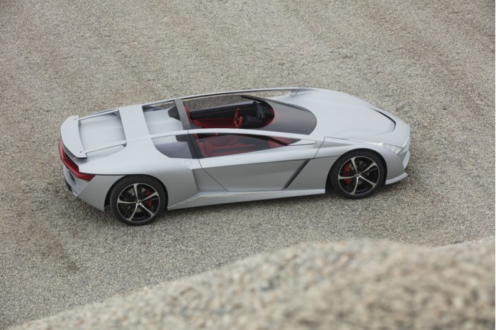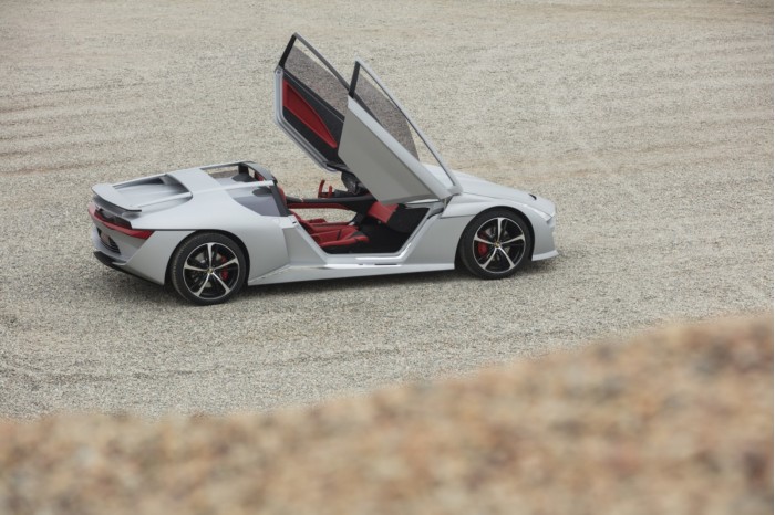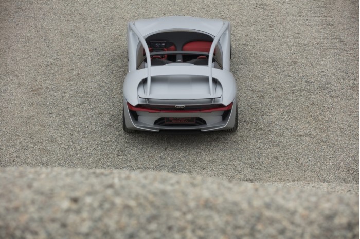 车身,自然使用的是碳纤维材料。作为一款barchetta,它完全没有任何车顶。扶壁风格的功能让Dora可以摇动一个包裹式挡风玻璃,看起来就像它在一个整体上延伸到车门的后面。