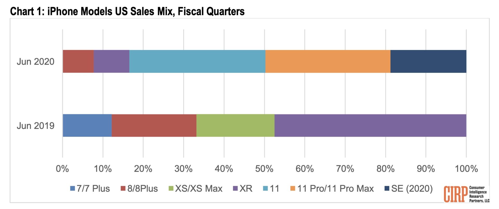 根据Consumer Intelligence Research Partners(CIRP)的最新报告显示,尽管iPhone SE在2020年第二季度推出的时间较晚,但其销量占到了所有iPhone销量的19%。苹果公司的这款低端智能手机已经成功地让拥有旧iPhone的用户升级。这一数据是基于CIRP对美国iPhone用户的调查产生。