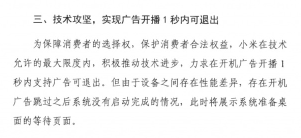 目前行得通的整改方案就是加入广告一键关闭的功能,在开机广告出现的同时提示可以跳过广告,用户可以按某一个按键来跳过广告直接进入系统菜单界面。这个方案其实也是消费者和厂商各退一步,妥协出来的结果。