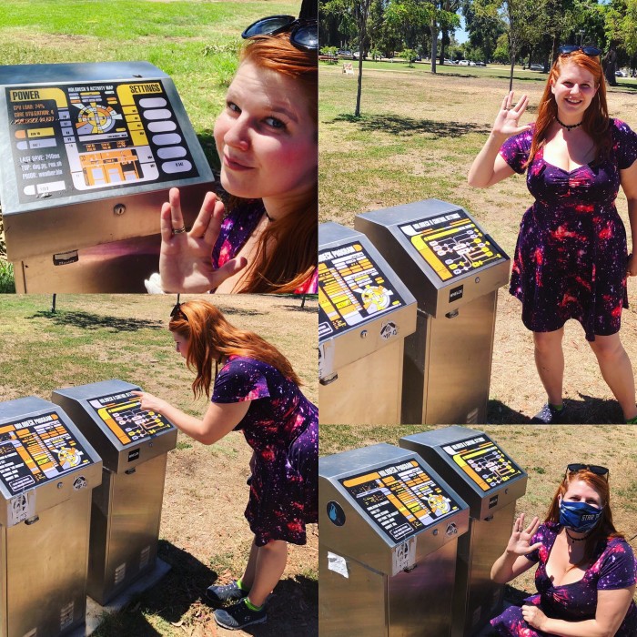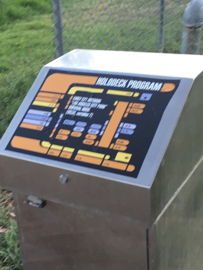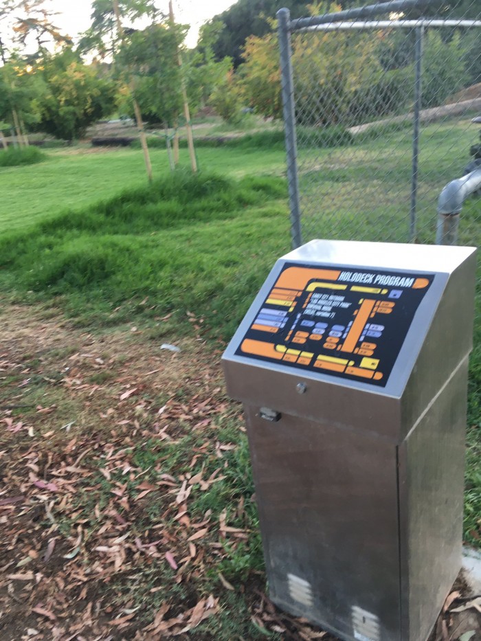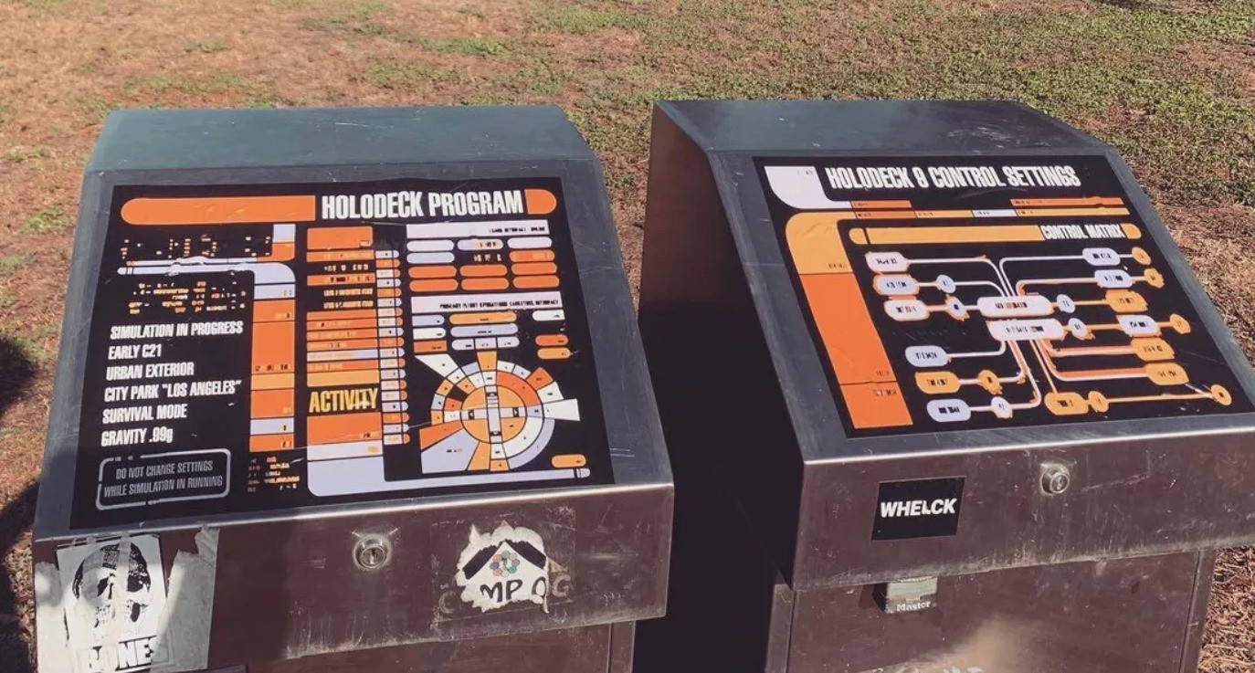 据外媒报道,如果你正在加利福尼亚州北好莱坞的一个公园里慢跑那么你可能会偶然发现对《星际迷航》的赞颂。一名《星际迷航》粉丝为了找点乐子,将两座通常用来在地面上架输电线的普通金属塔改造成了极客造型。布景设计师Arthur Chadwick把金属塔改造成了《星际迷航:下一代》中的星际迷航LCARS全息甲板控制面板。