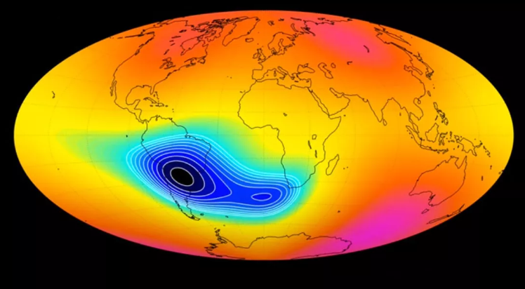 据外媒CNET报道,地球的磁场一直有点异常。从非洲到南美洲的南大西洋上空的一个区域自1950年代以来经历了强烈的减弱,在过去五年里,异常现象似乎准备一分为二。这引起了科学家的一些关注,因为磁场就像地球的保护伞,保护我们不受太空中带电粒子的影响。有人认为,这个异常点可能预示着我们的磁极发生了逆转,这将对电力和导航系统造成破坏。