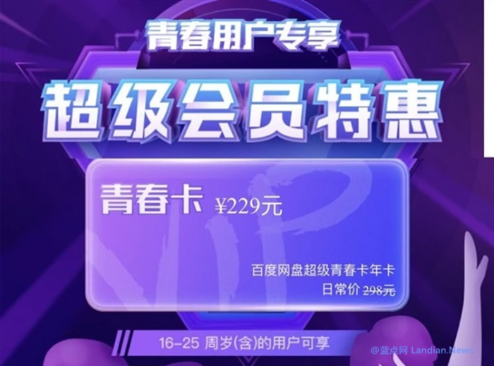 百度网盘因为限速等问题遭到很多网友的鄙视,不过鄙视归鄙视、指望百度不限速做慈善用爱发电也不太可能的。在口碑逐渐降低后百度网盘最近联合不少哔哩哔哩UP主投放软广,重点吸引的是 16~25 岁的青年和学生党使用。为此百度网盘在超级会员的基础上推出超级青春卡,实际上这就是百度网盘超级会员只是换个名义加个噱头而已。