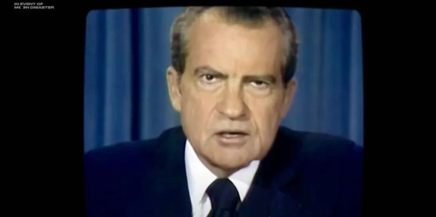 尼克松在伪造的视频中提到宇航员尼尔·阿姆斯特朗、巴兹·奥尔德林和迈克尔·柯林斯时说道:“命运已经注定,那些前往月球进行和平探索的人将在那里安息。”