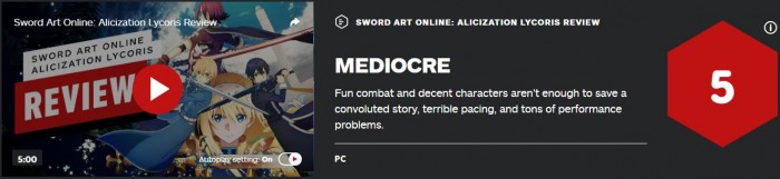 距离“刀剑神域”系列最新作《刀剑神域:彼岸游境》正式发售,已经过去快两个星期的时间了,今日(7月21日)IGN对这款漫改游戏的评价也姗姗来迟,给该作打出了 5 分的评价。