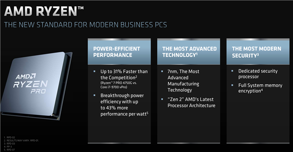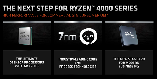 AMD锐龙PRO 4000、速龙PRO 3000G系列机处理器将于2020年7月21日上市,由系统集成商推出相应的整机产品,OEM相关机型也将于今年秋季上市。