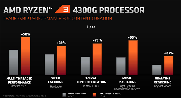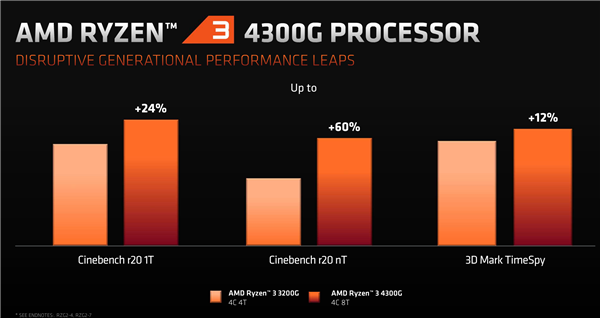 AMD锐龙4000G、速龙3000G系列处理器预计2020年第三季度上市,包括联想、惠普在内的OEM合作伙伴都会推出相应的整机产品。