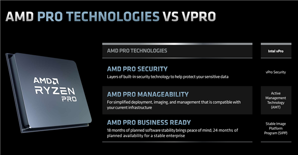 当然了,PRO系列支持AMD PRO商用技术,对标Intel vPRO博锐,具体包括: