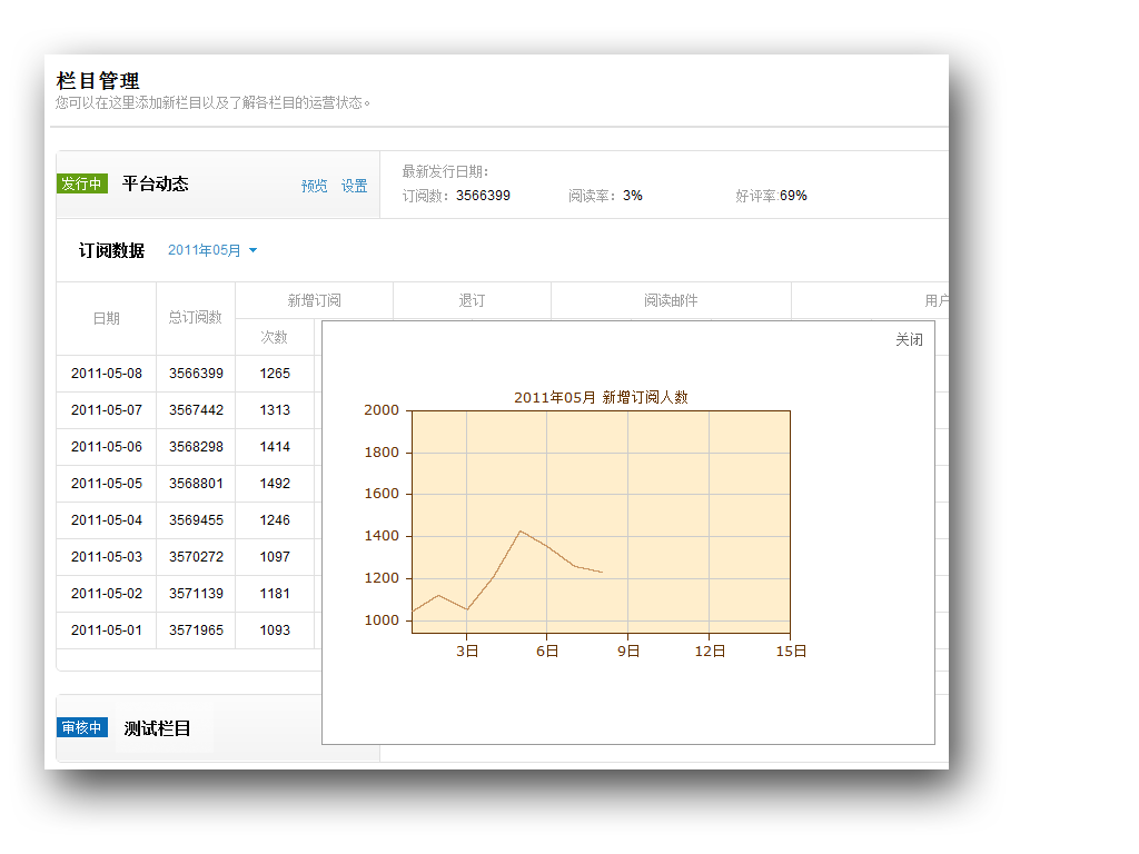 “QQ 邮箱订阅开放平台”从一开始就给创作者提供了数据监测工具,也是微信公众平台的雏形。