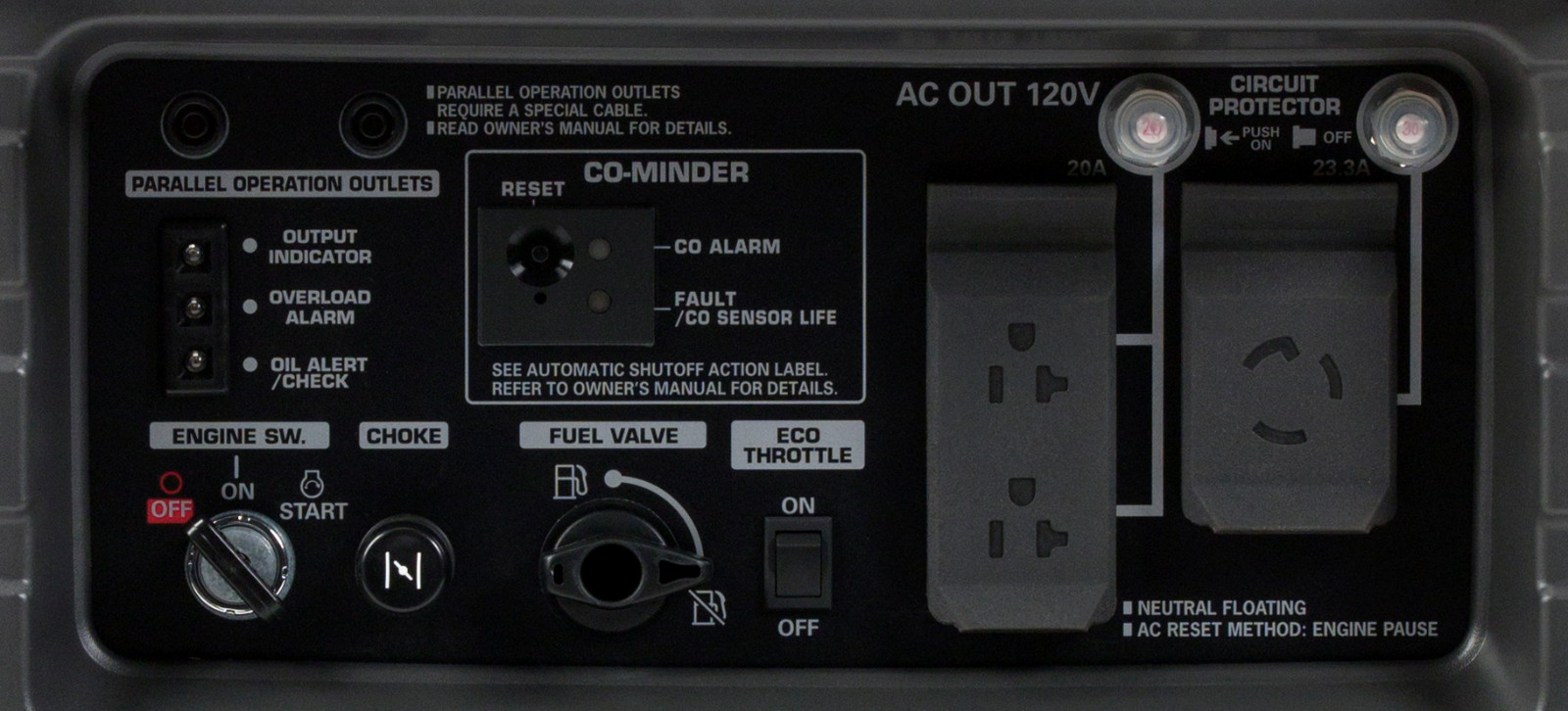 本田的这一系统使用了一氧化碳传感器,如果在给定时间内记录达到或超过800ppm,或在10分钟内平均记录达到400ppm,就会触发一氧化碳传感器。如果达到这些级别,生成器将会自动关闭。控制面板上的指示灯则表明有一个相关问题被识别出来。