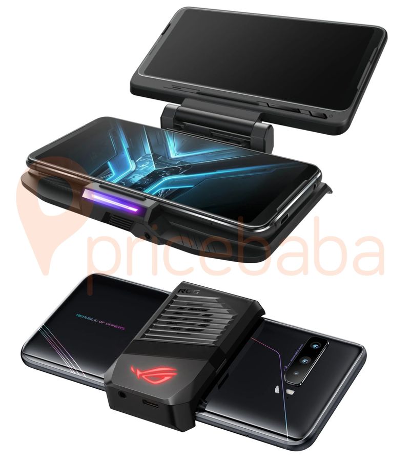 根据外媒 Pricebaba 提供的渲染图,ROG Phone 3 在外观上不会有太大的调整,依然支持 Kunai控制器、TwinView Dock 和 AeroActive Cooler 这些外设。唯一的区别在于 Lightning Armor 外壳,现在有一个矩阵式排列的 LED 灯,给人复古的感觉。