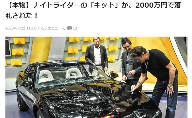 ·本次参与拍卖的《Knight 2000》车原型来自美系名车第三代庞蒂亚克火鸟K.I.T.T.,是1983年参演《霹雳游侠》总共3台中的其中一台,经过2周的在线竞价后,最终以19万2000美元价格成交。