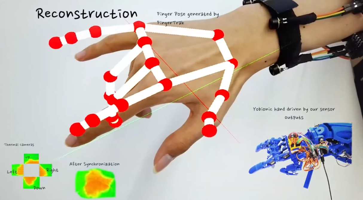 据外媒New Atlas报道,捕捉人类手部的复杂性是一项艰巨的任务。现在,康奈尔大学和威斯康星大学麦迪逊分校的工程师们已经开发出一种新的可穿戴系统,利用热传感器准确预测手部位置,在VR、机器人和翻译手语方面有潜在应用。