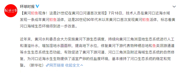 最近,一种叫“鱽鱼”的鱼进入了我们的视线。新闻中说,水利部黄河水利委员会技术人员在黄河口近海水域发现一条成年黄河鱽鱼活体,这是20世纪90年代末以来黄河口首次发现黄河鱽鱼活体。相关的微博话题关注度也非常高: