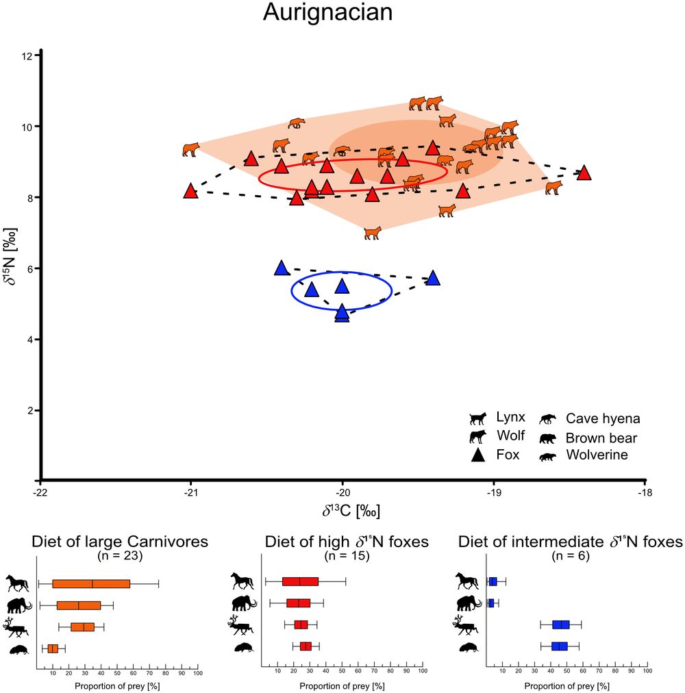 但在几处年代较新、大约4.2万年前的遗址中,他们发现智人活动频繁,而狐狸吃下的食物则以驯鹿为主。驯鹿体型较大,不可能成为狐狸捕猎对象,但当时已成为人类重要狩猎目标。