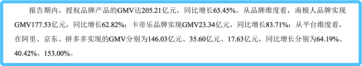 按照张玉祥的解释,这是“基于品牌授权的供应链和电商服务”商业模式,即公司根据供应商、经销商需求及业务发展需要,向其提供研发设计、质量管控、流量管理、数据分析与应用等多项增值服务,进而提升整个南极生态共同体的竞争力。