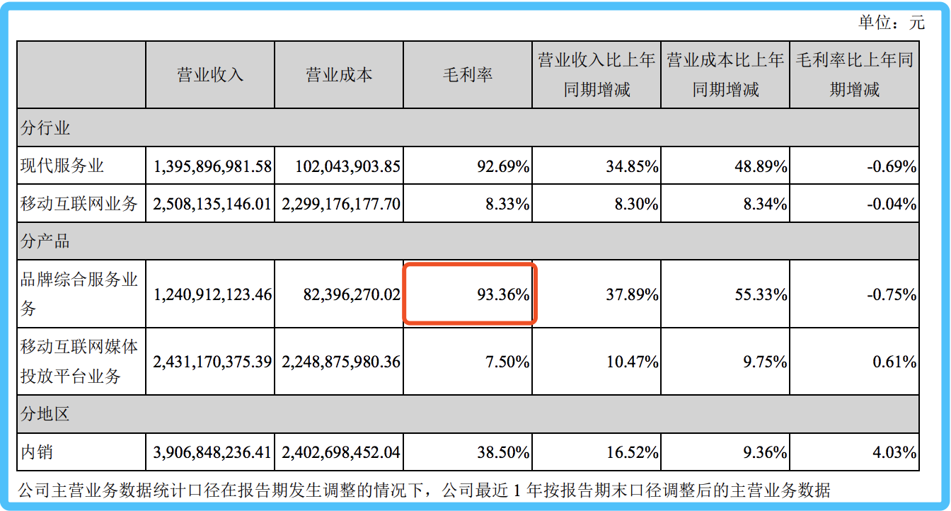 财报显示,2019年度,南极电商实现营业收入39.07亿元,同比增长16.52%;归属于上市公司股东的净利润12.06亿元,同比增长36.06%。其中,品牌综合服务业务毛利率高达93.36%;加上经销商品牌授权业务,南极电商的贴牌业务营收高达13.05亿元。