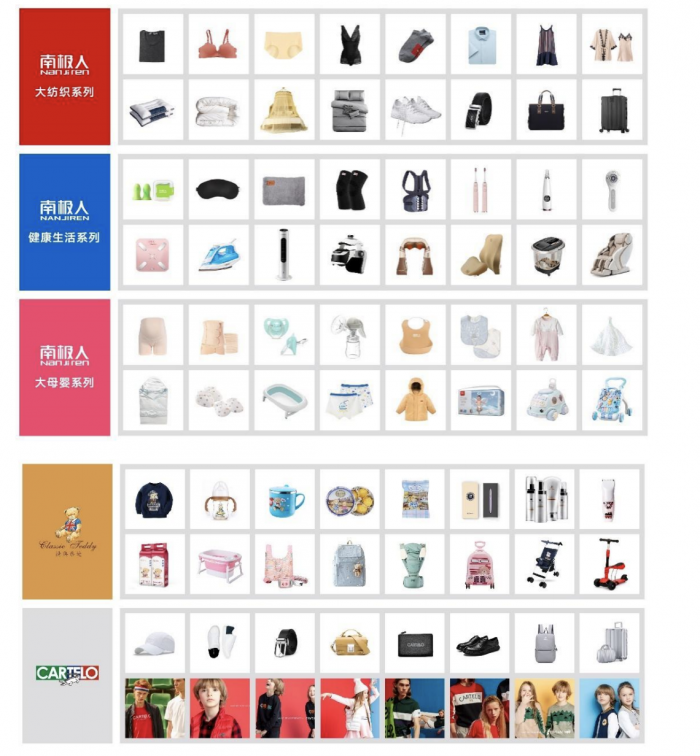 南极电商旗下主要品牌涉及品类