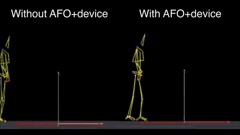 在对身体一侧瘫痪的中风患者进行的测试中,据称该装置能显著增加他们的膝关节弯曲度。希望使用者在使用该工具训练一段时间后,能够重新形成正确步态的肌肉记忆,从而最终能够在没有任何帮助的情况下再次正常行走。