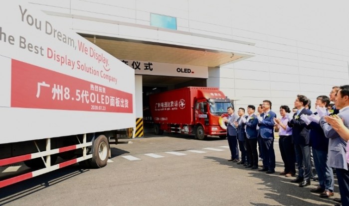 7月23日,LG Display在位于广州市高新技术产业开发区的8.5代线(2200mm×2500mm)OLED面板工厂举行了量产出货仪式。自此,LG Display广州OLED面板工厂正式进入量产阶段。据悉,LG Display是全球唯一一家可生产大尺寸OLED面板的厂商,广州OLED面板工厂投入量产后月产能达6万片玻璃基板,加上韩国坡州工厂的7万片玻璃基板月产能,总体月产能达13万片。