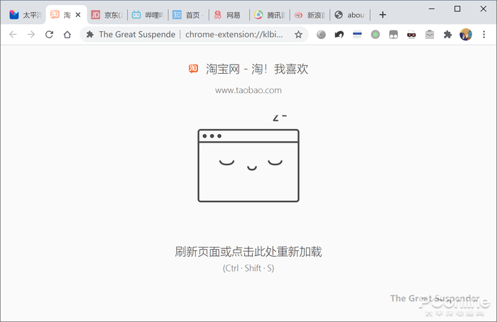 这是一款老牌的Chrome扩展,它的作用在于可以冻结后台的标签页。在Chrome商店中,可以直接安装The Great Suspender,而国内用户也可以直接通过搜索引擎找相应的crx文件安装。