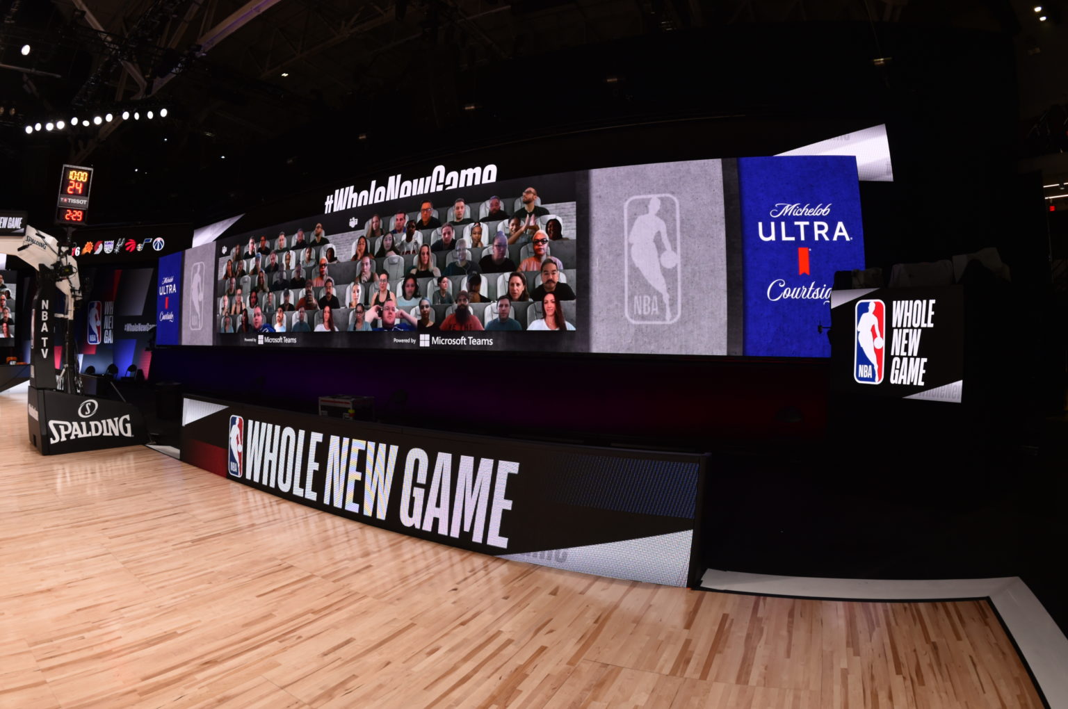 除了球迷可以 "参加 "比赛之外,NBA和微软表示Teams的参与者将可以使用“超过30个摄像头”,其中包括一些定位在 “更靠近球场的摄像头,以展示前所未有的摄像头角度”。NBA还在球场周围安装了麦克风,以捕捉更多来自球场的声音。