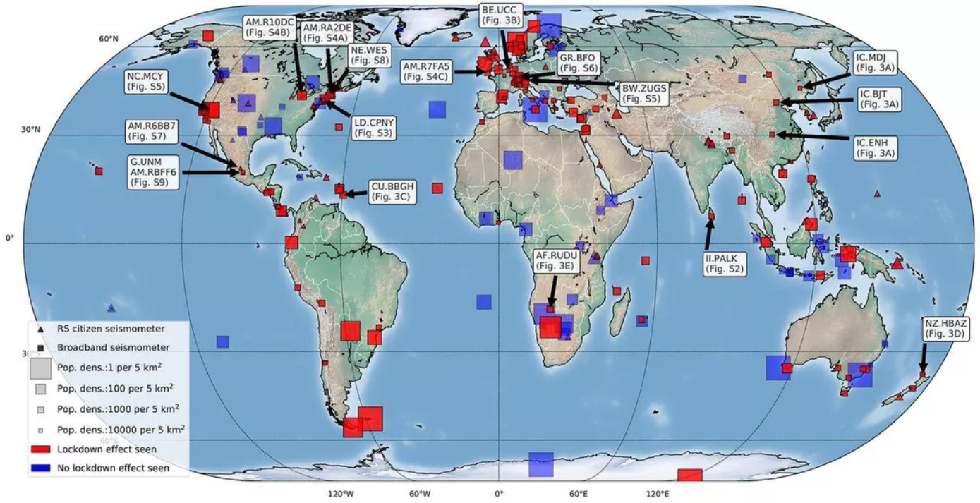 这项新研究对来自世界各地的地震检波器展开了研究分析,结果科研人员发现,封锁--包括全面隔离、物理隔离措施、旅行限制以及关闭企业和服务--使得人类活动造成的地震信号出现显著减少。
