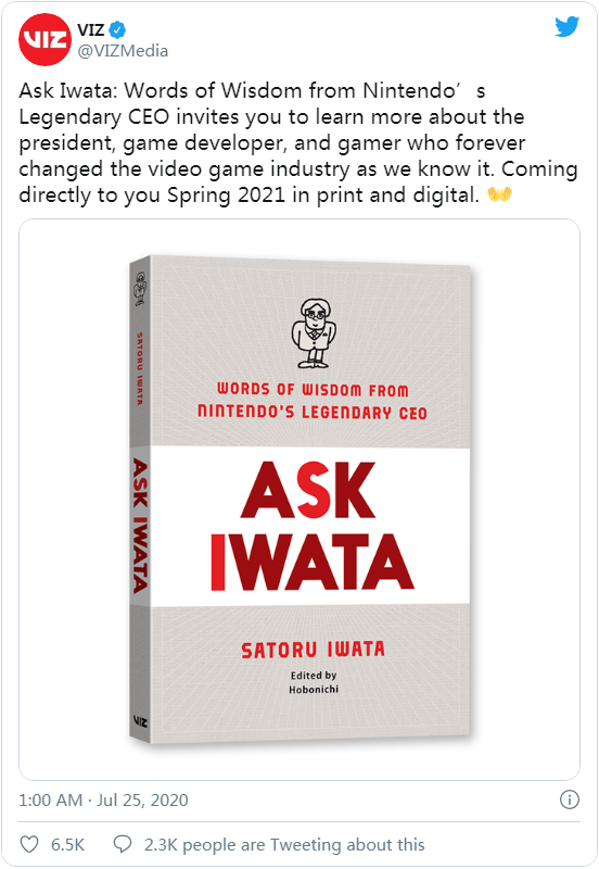 出版商 VIZ Media 今日宣布,向 2015 年 7 月离世的前任天堂总裁兼 CEO 岩田聪(Satoru Iwata)致敬的一本新书,将于 2021 年正式与大家见面。在去年于日本率先发行了《岩田聪语录》之后,该书的英文版《ASK IWATA》也将以纸质和电子版的形式到来。