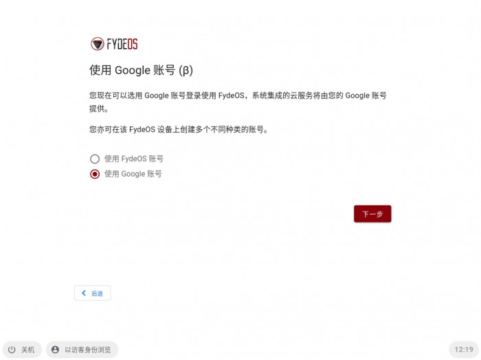 添加账号类型选择,支持使用 Google 账号登录 FydeOS