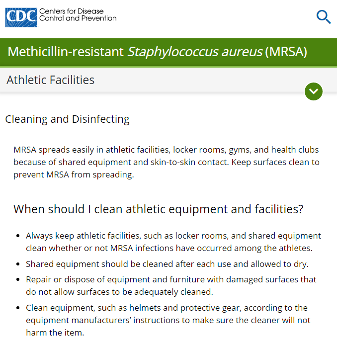 根据美国疾控中心(CDC)的建议,只需在公共健身器材上使用适当的消毒剂,即可杀死引发 MRSA 感染的耐药性金双色葡萄球菌等病原。