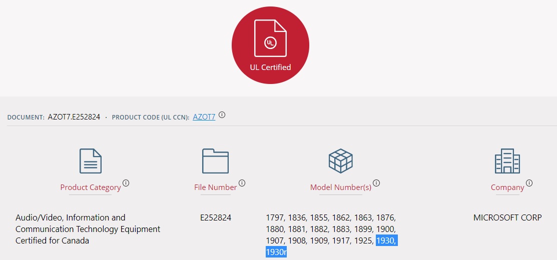 型号为1930的微软双屏Android智能手机Surface Duo不久前在FCC网站上被发现,它还通过了蓝牙SIG认证。今天,Surface Duo安卓手机的这一型号同样出现在加拿大机构UL LLC认证中。值得注意的是,Surface Duo的另一个型号此次一起出现在加拿大的UL认证中,型号为 "1930r",这可能是该设备的高配置款或其锁定/解锁版本。