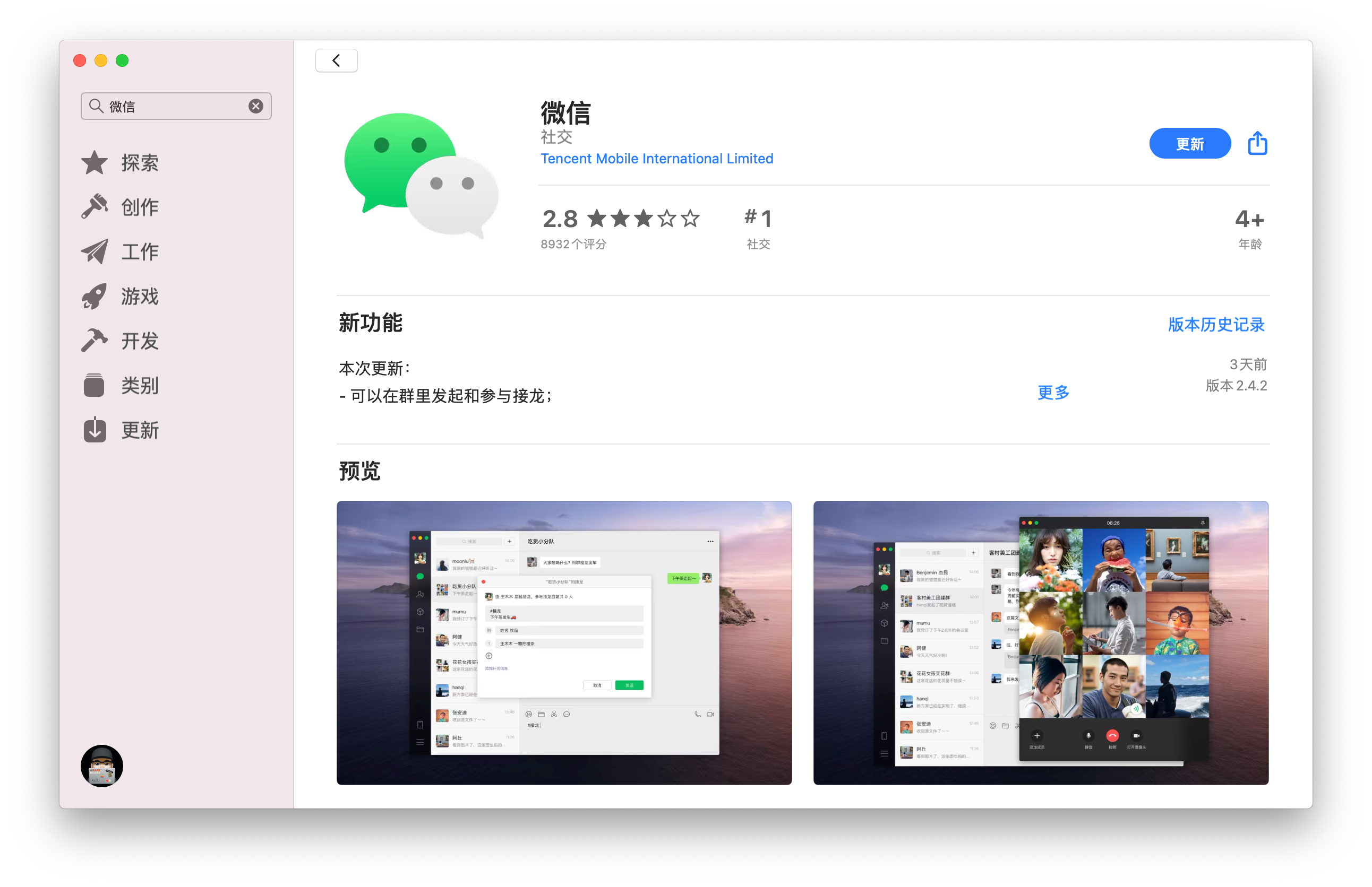 以上就是微信 2.4.2 for Mac 的全部更新内容,从年初就开始测试的小程序并没有在这个版本中实装,但你仍然可以点击这里下载微信 beta for Mac 测试版来体验在 Mac 上打开小程序的功能(该测试版同样支持接龙、标记未读等在 2.4.2 实装的功能)。